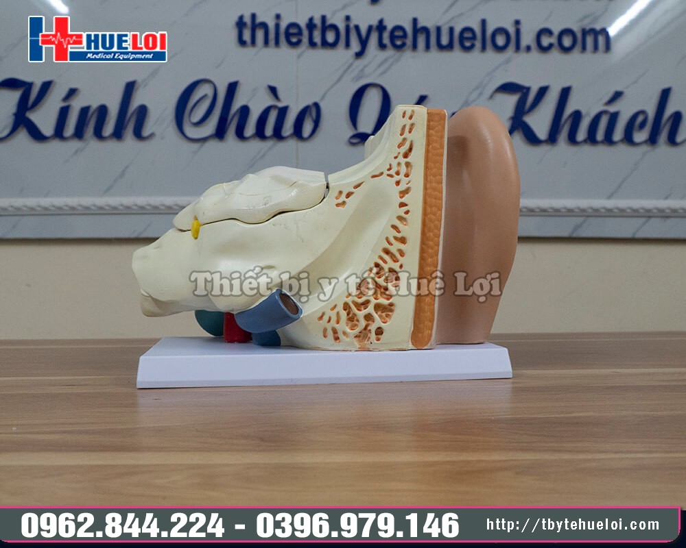 Mô hình giải phẫu tai người với kích thước phóng đại 5 lần so với thực tế, các bộ phận có thể tháo rời để nghiên cứu. Sản phẩm thích hợp sử dụng cho việc giảng dạy và học tập tại các trường đại học cao đăng y, hoặc cũng có thể dùng để trưng bày tại các phòng khám giúp bác sỹ có thể giải thích cho bệnh nhân khi cần.